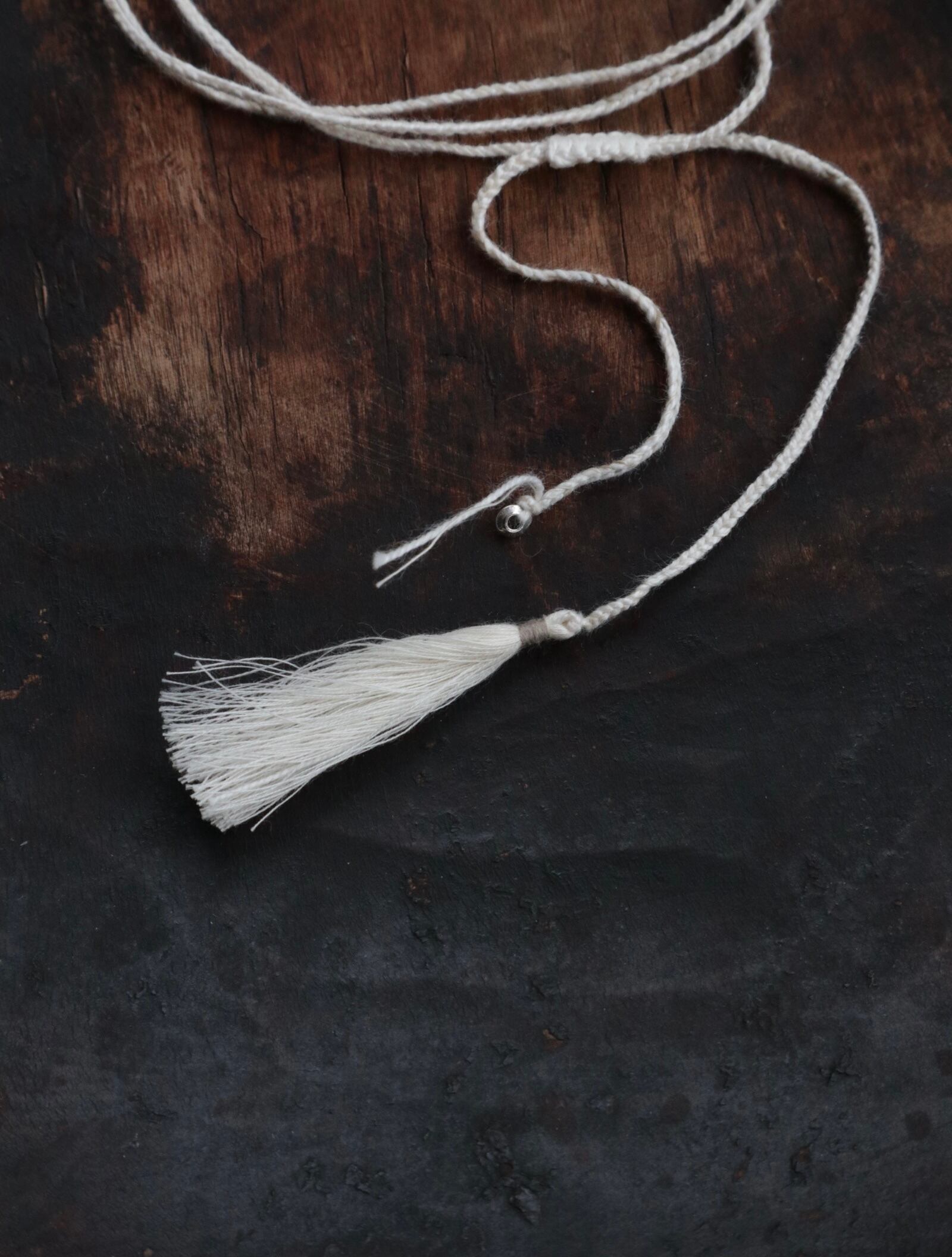 垂らす紐を長くしてチョーカーのようにしたり、お好きな形で身につけてください。