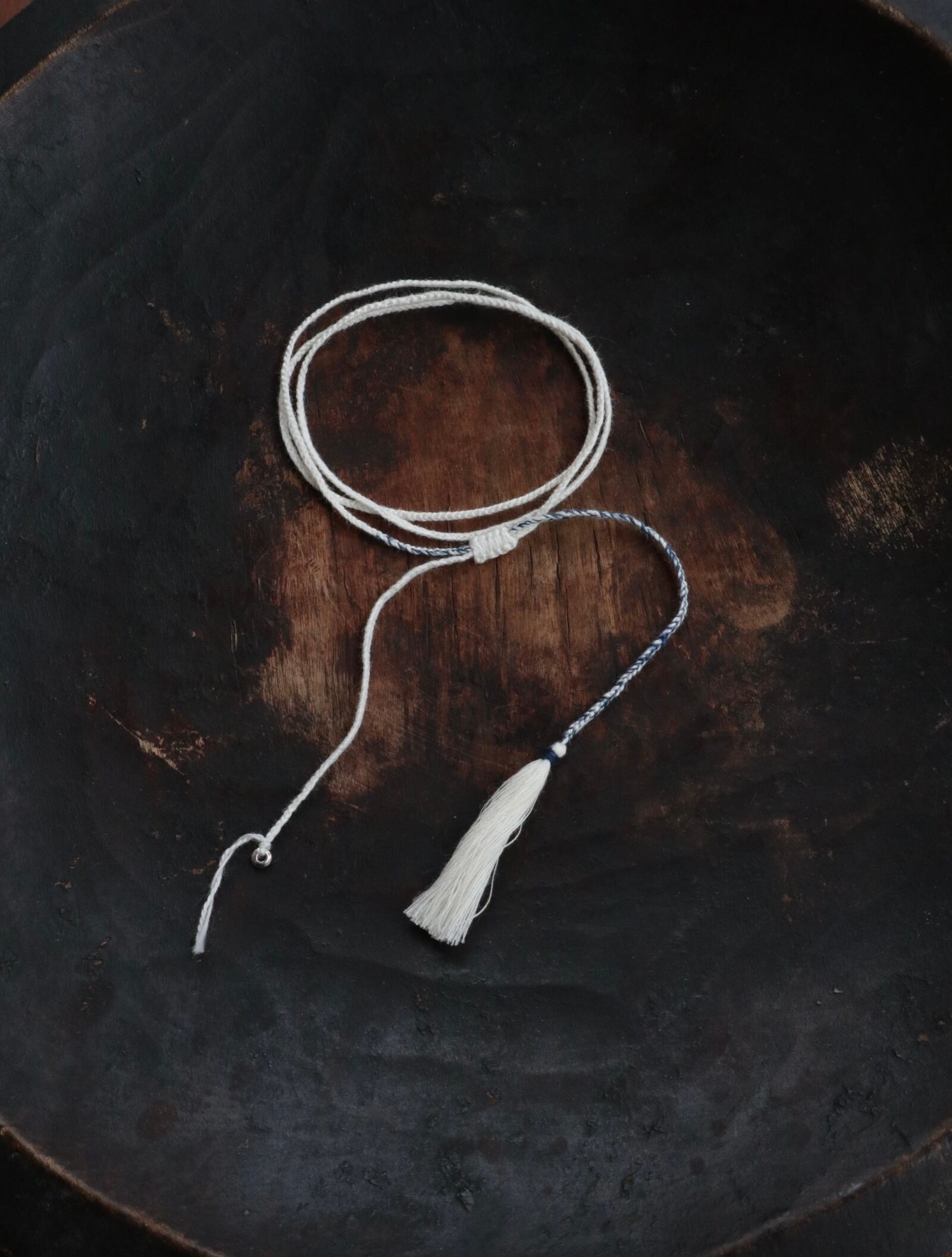 垂らす紐を長くしてチョーカーのようにしたり、お好きな形で身につけてください。