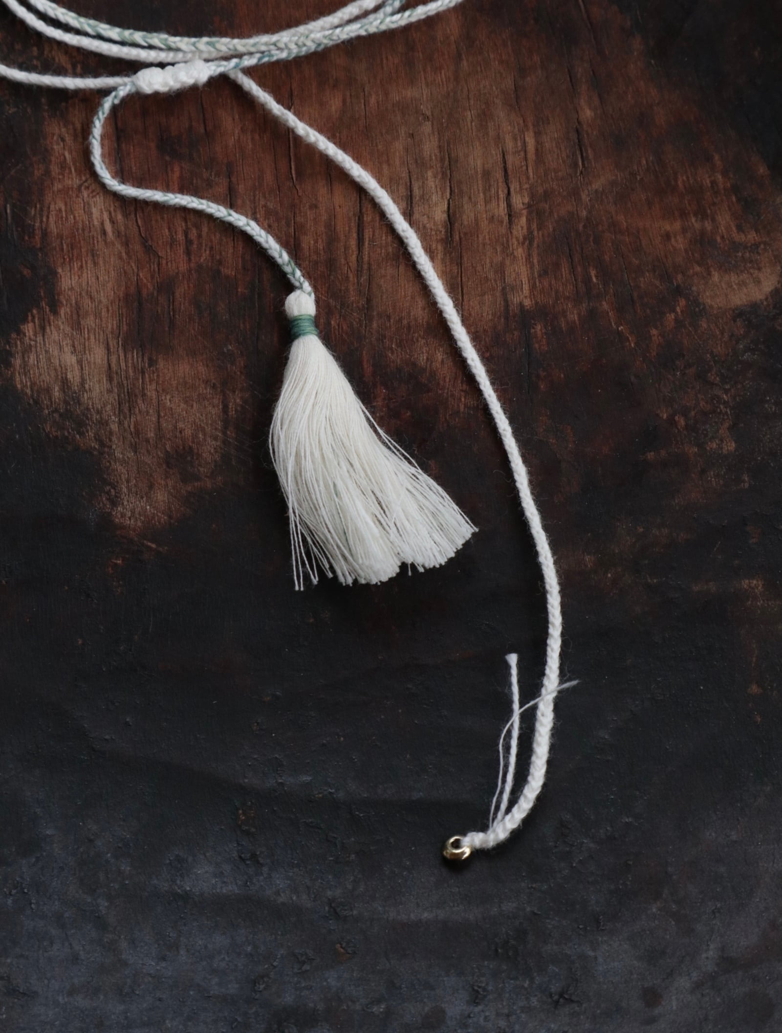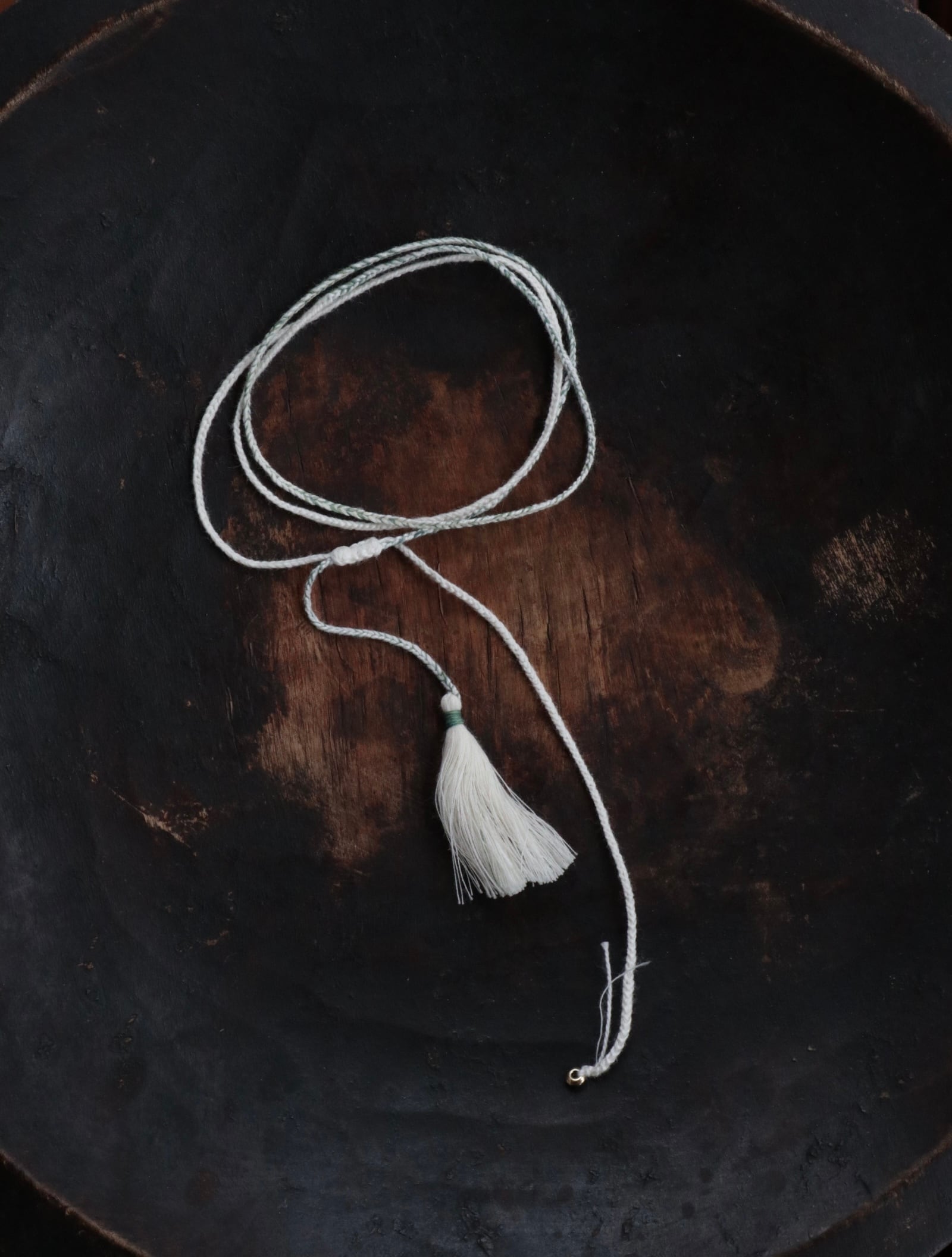 垂らす紐を長くしてチョーカーのようにしたり、お好きな形で身につけてください。