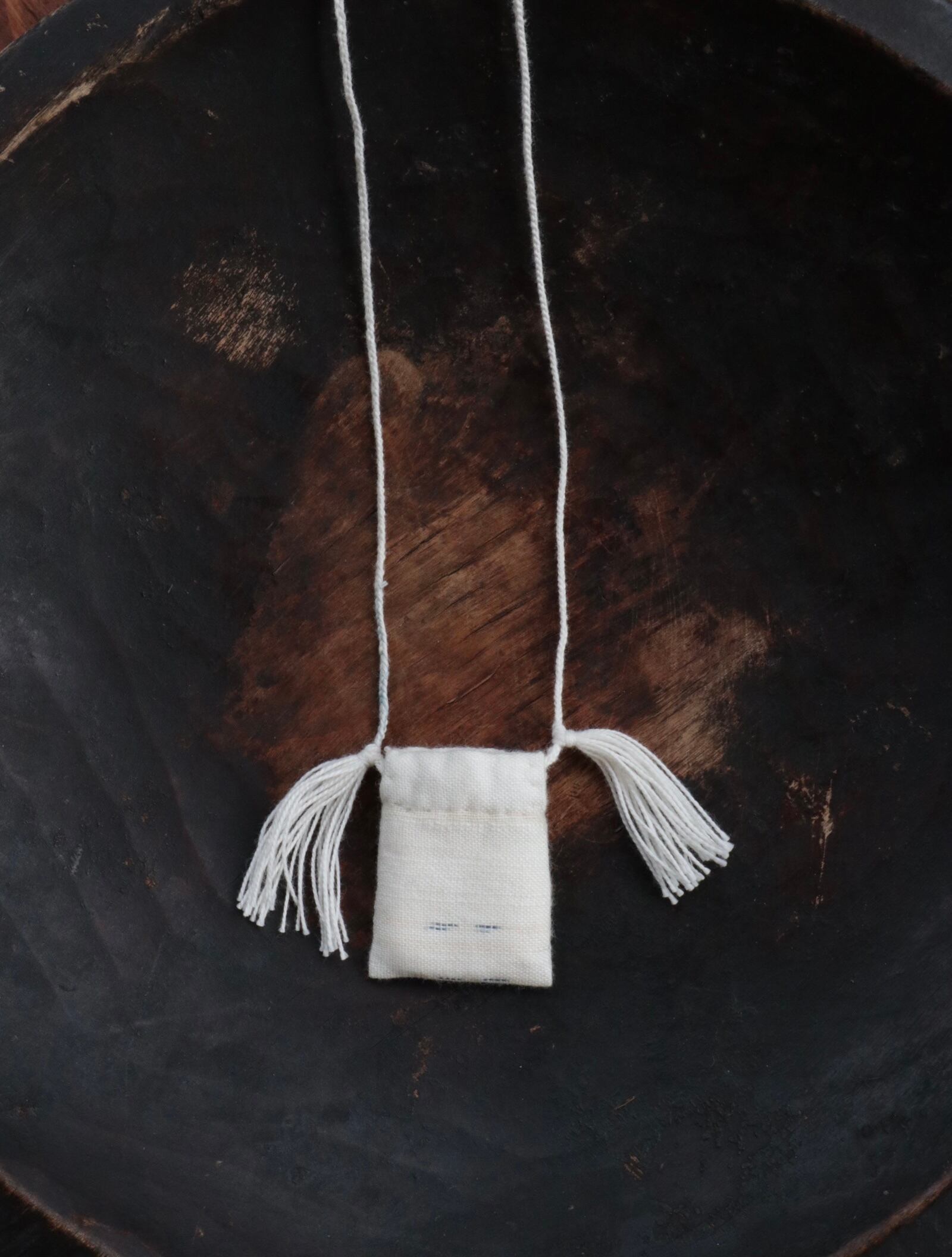 細番手の生成糸で織り上げた小さな袋物です。